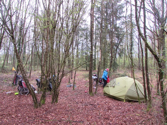 | Bo and Katy depart a soggy campsite near Pontorson some 10km from the Mont... |